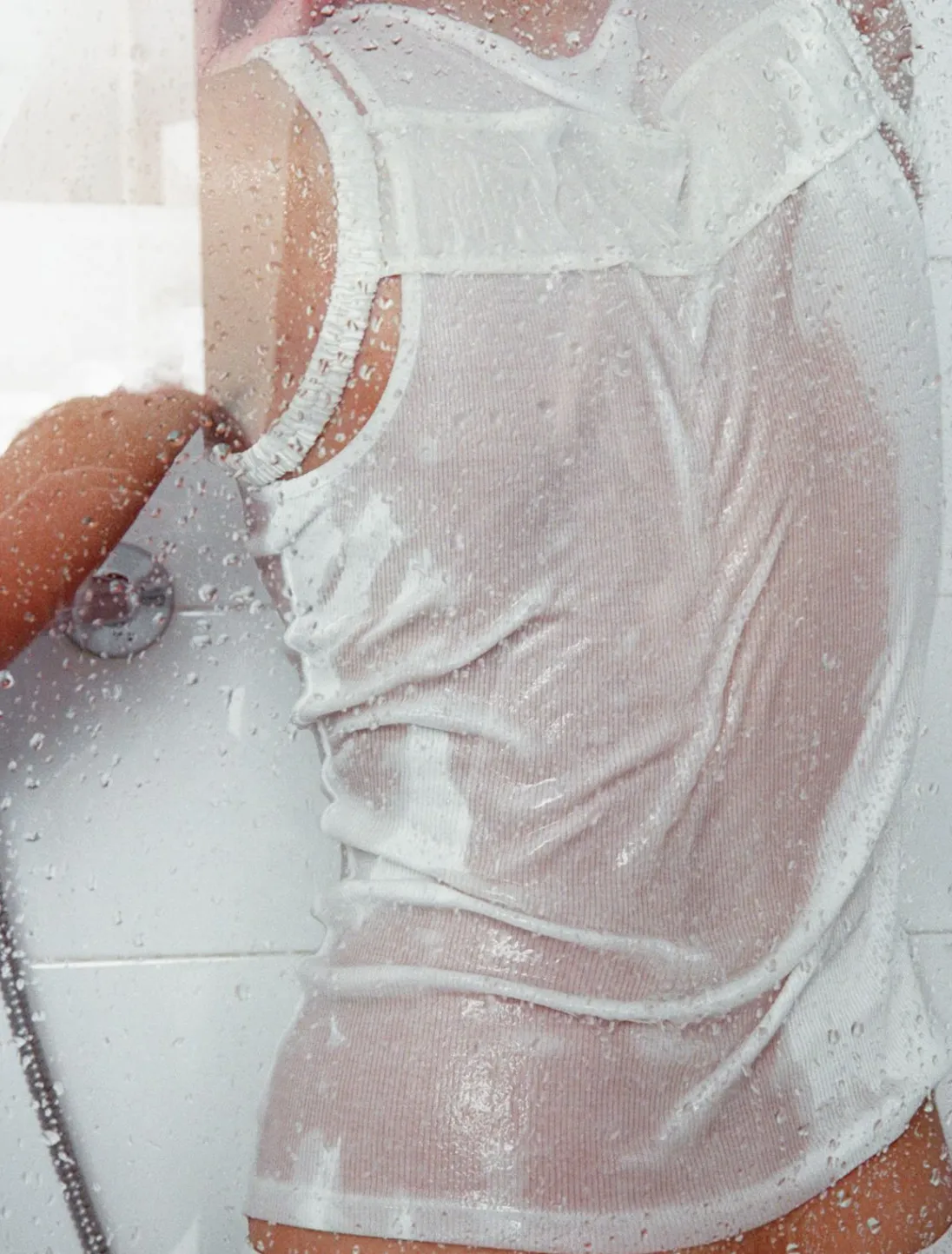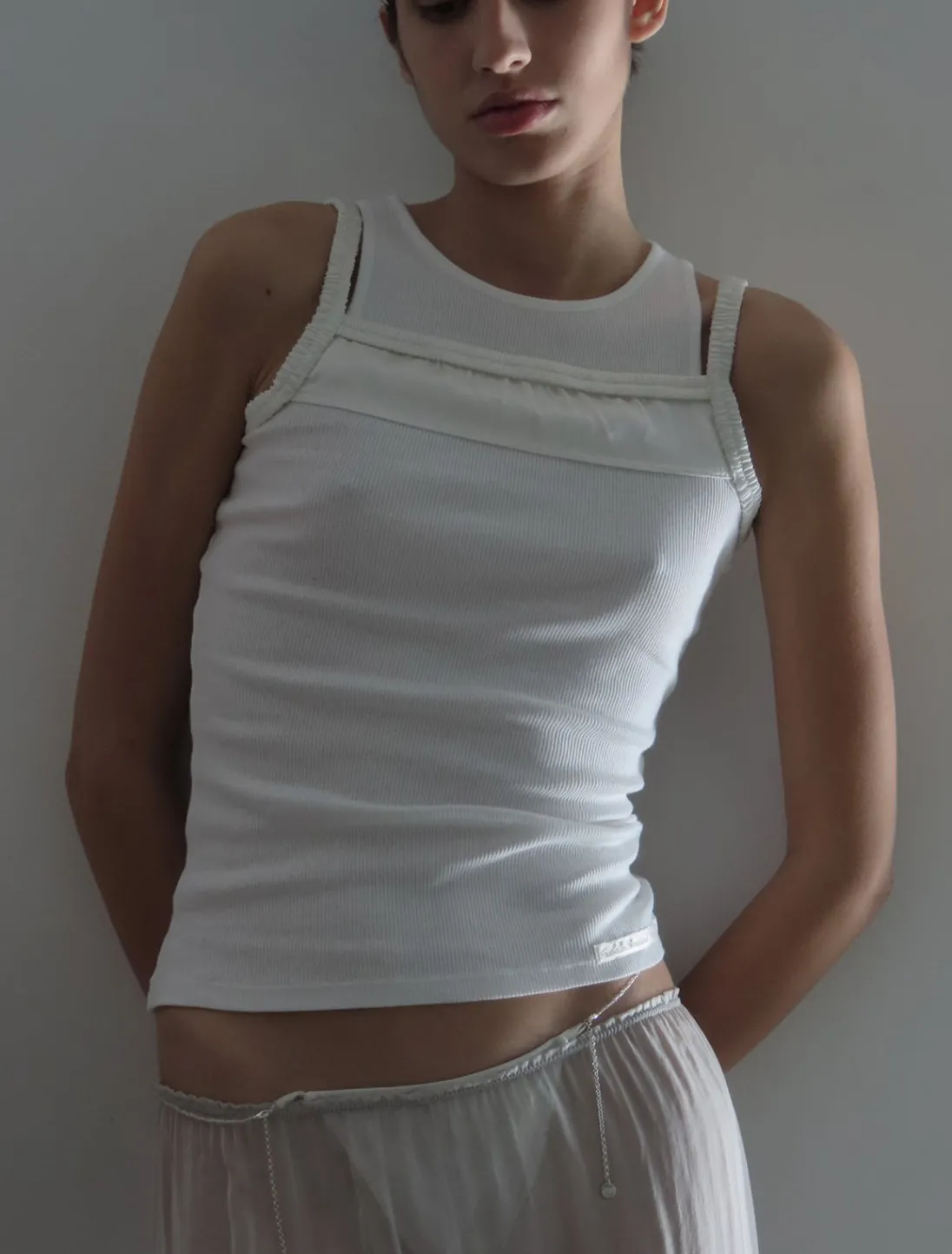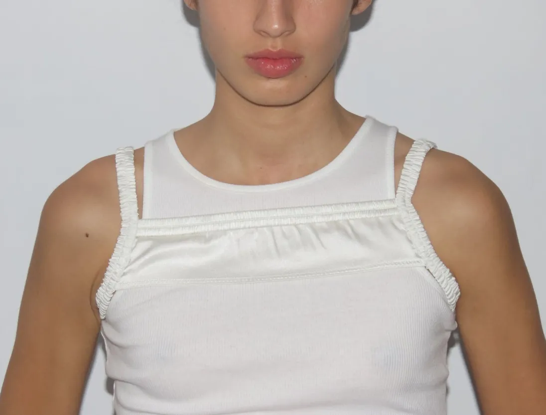 Todelt Ærmeløs Bomuldsribbet Tanktop Med Silkestropper På Toppen.