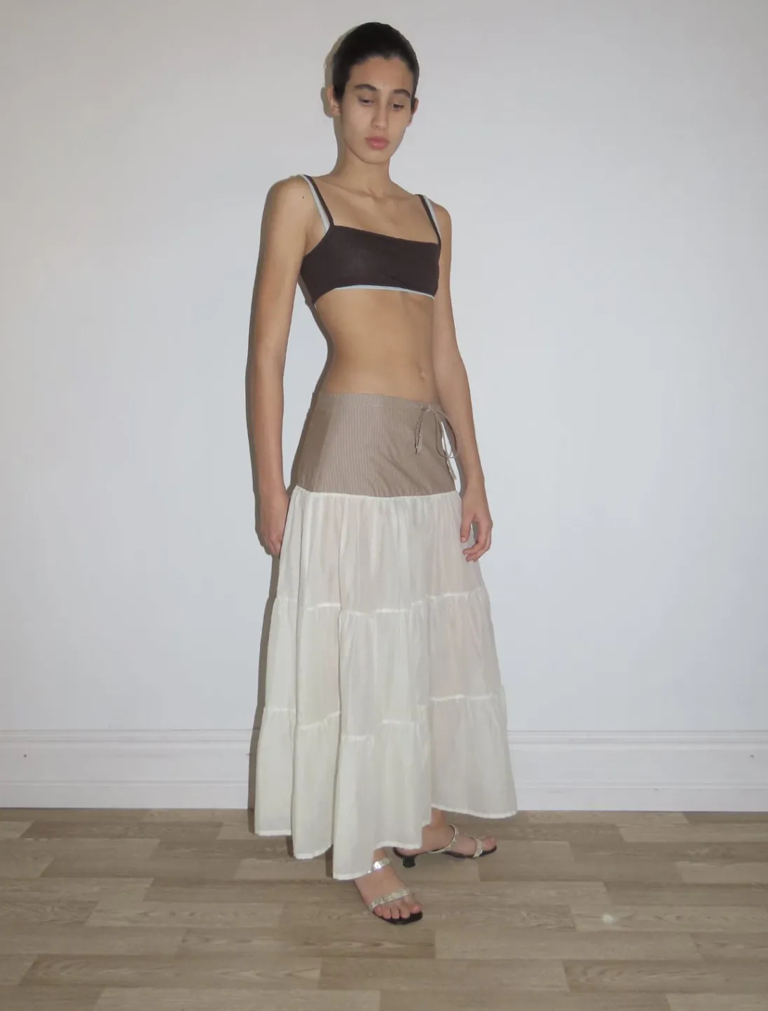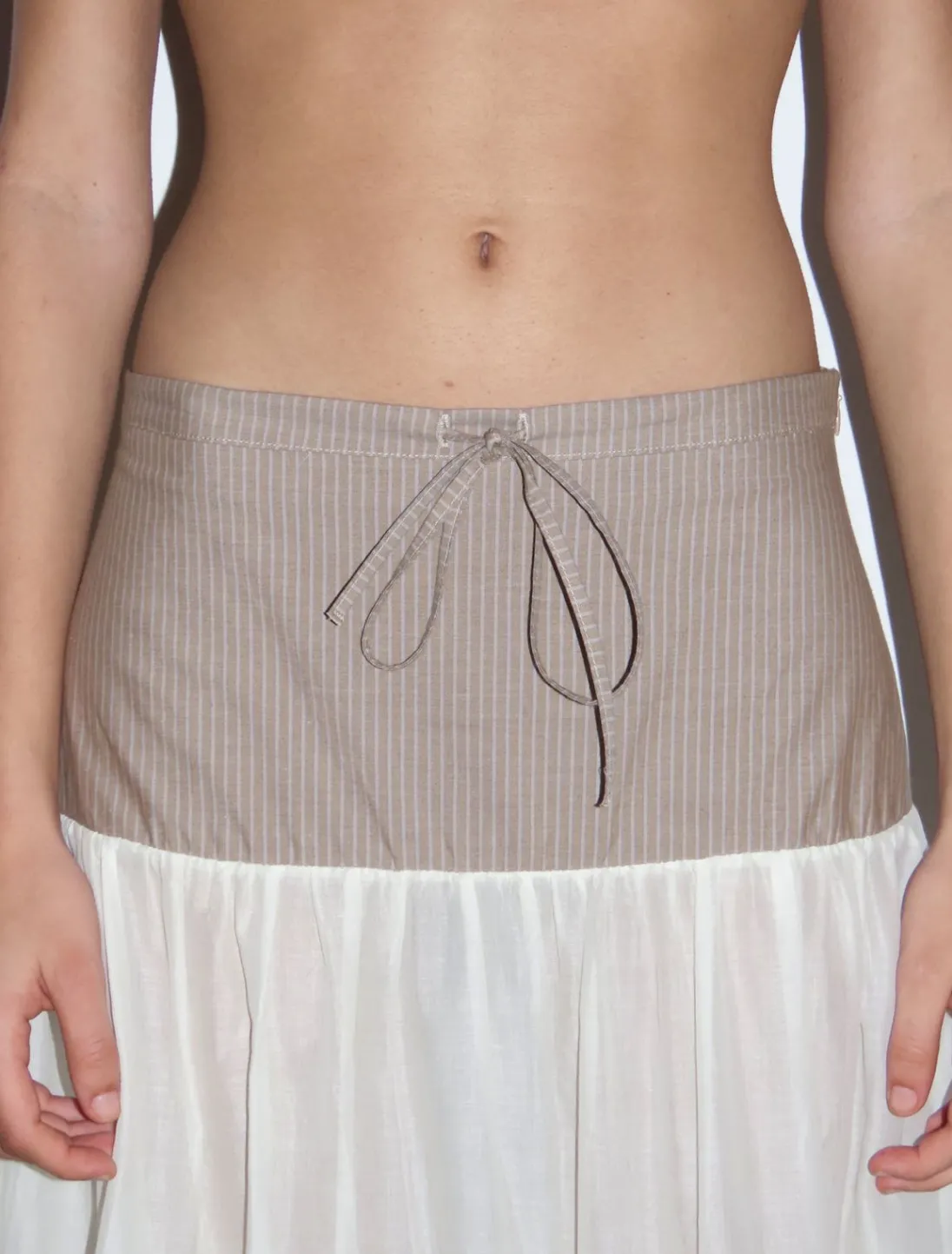 Den Øverste Del Er Lavet Af Stribet Stof, Og Bunden Er En Let Gennemsigtig Voile.