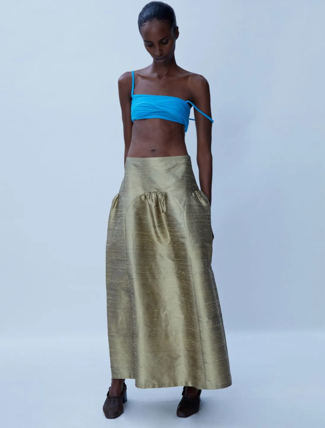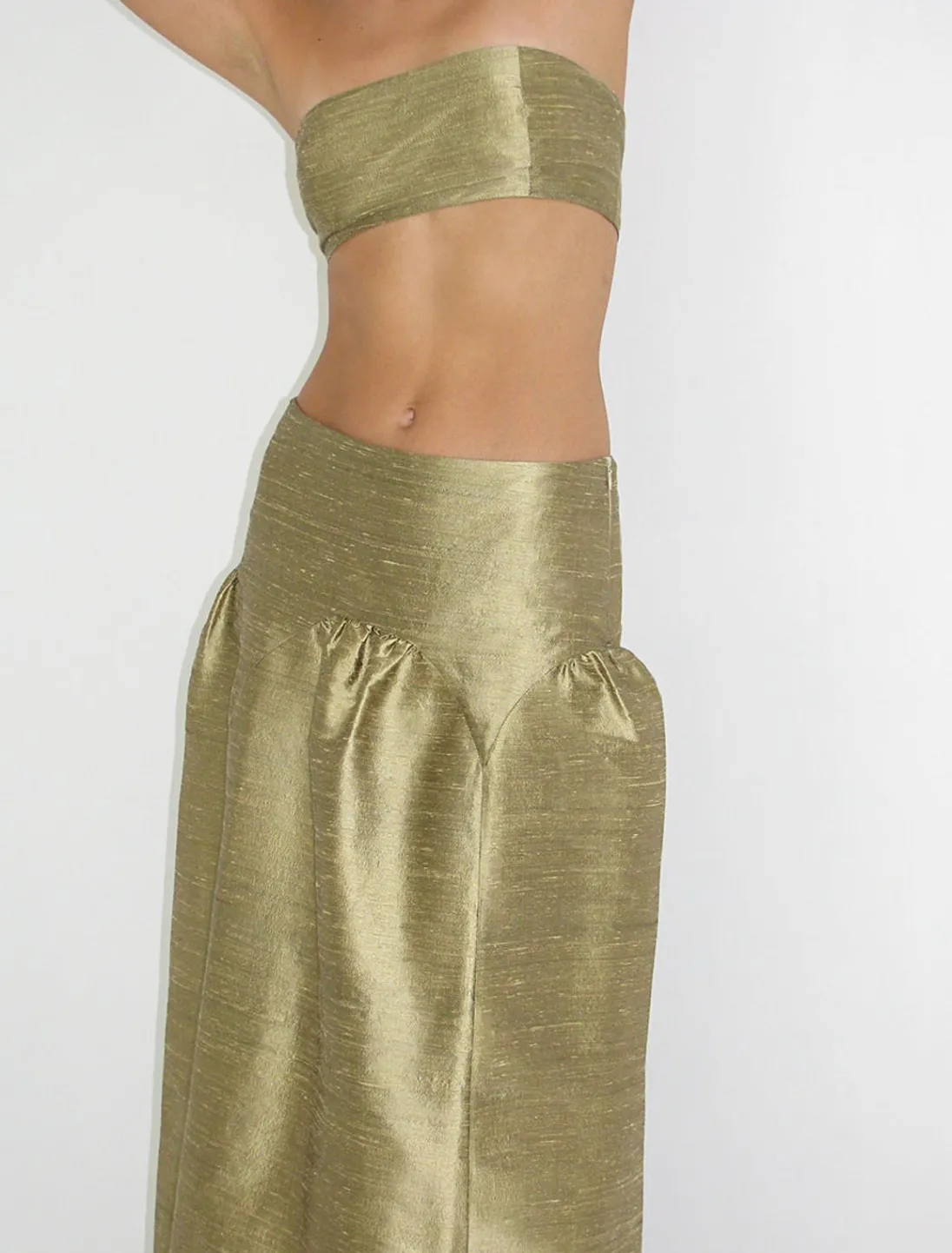 Puffy Nederdel I Silke Med Lav Talje.