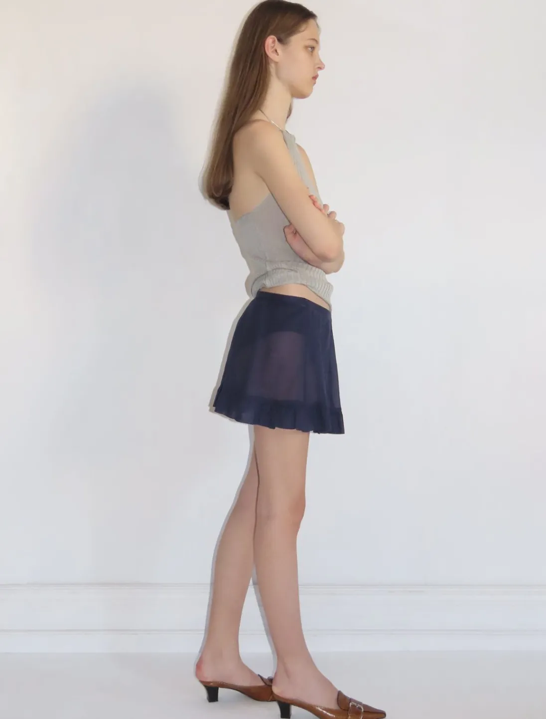 Mini-Nederdel Med Lav Talje Med Voile-Syning I Bunden.