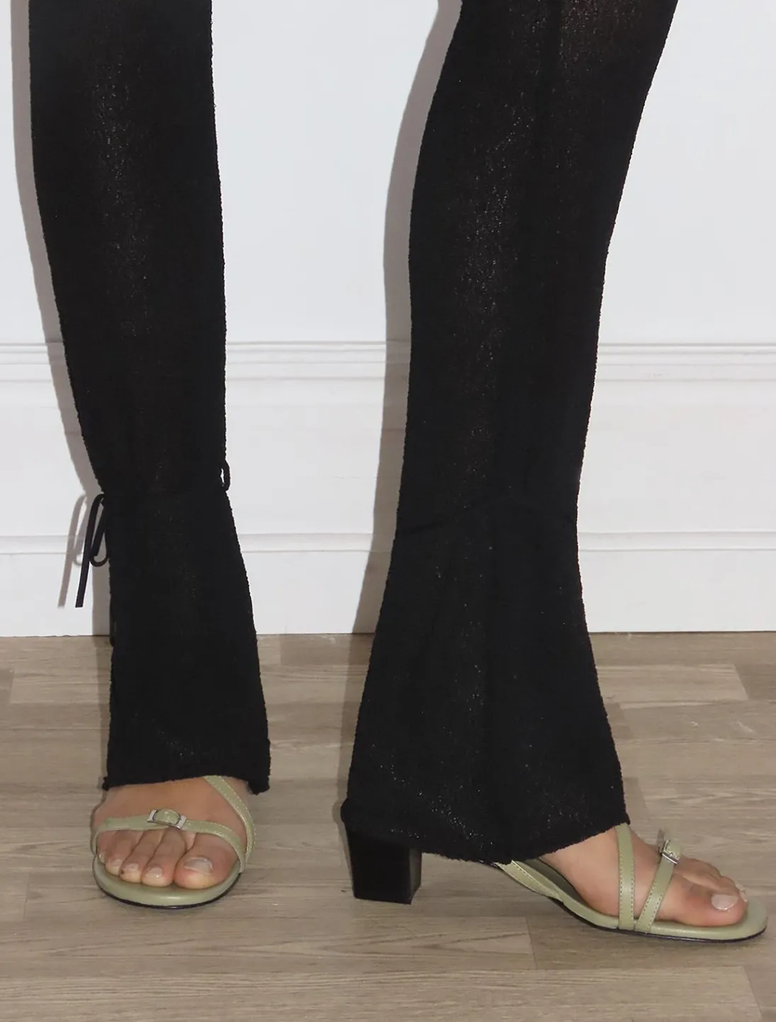 Fastsiddende, Lavtaljede Strikbukser Med Elastikbånd I Bunden Af Benet.