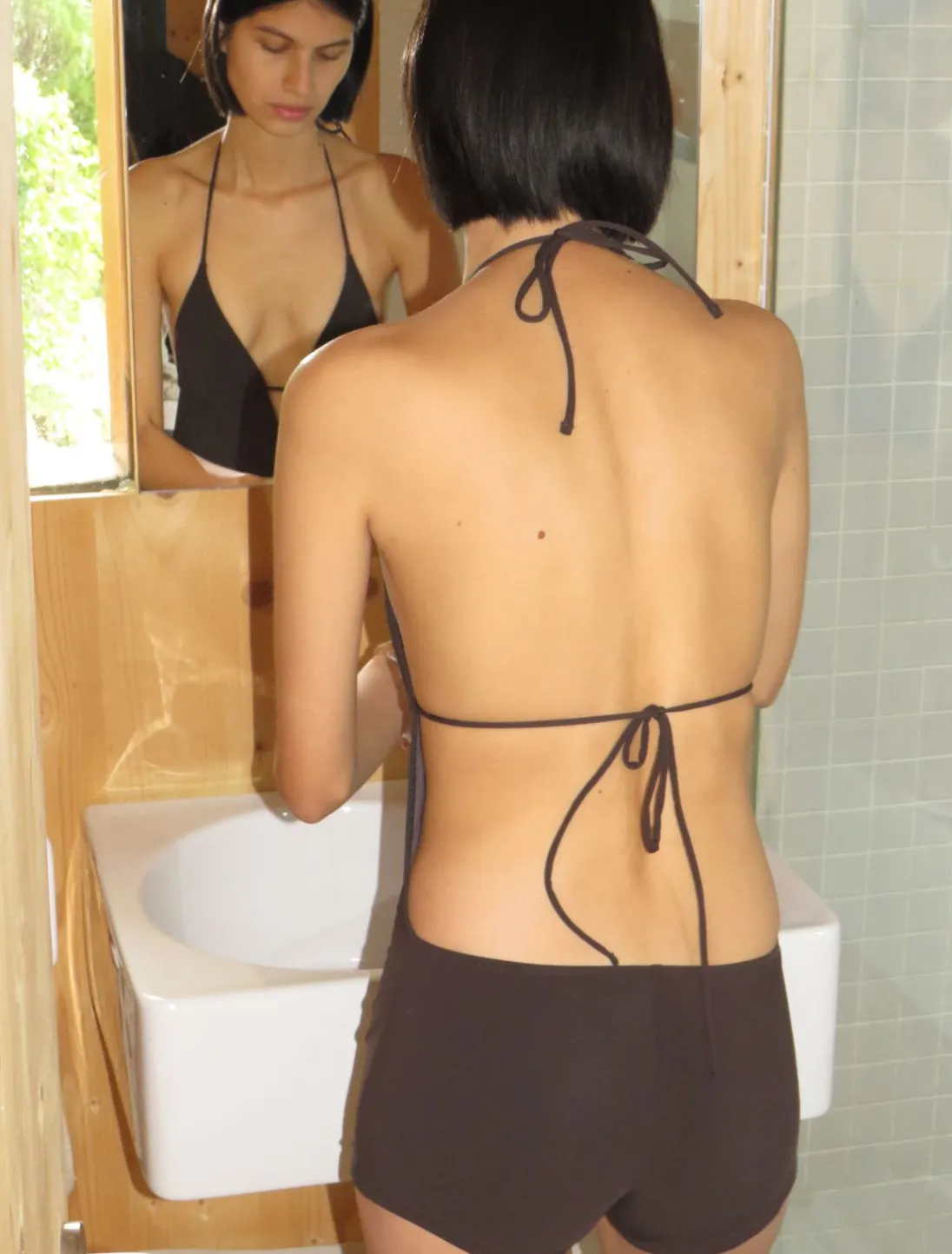 Badedragt Med Åben Ryg Og Justerbar Brystsnøre Lavet Af Genbrugsmaterialer.