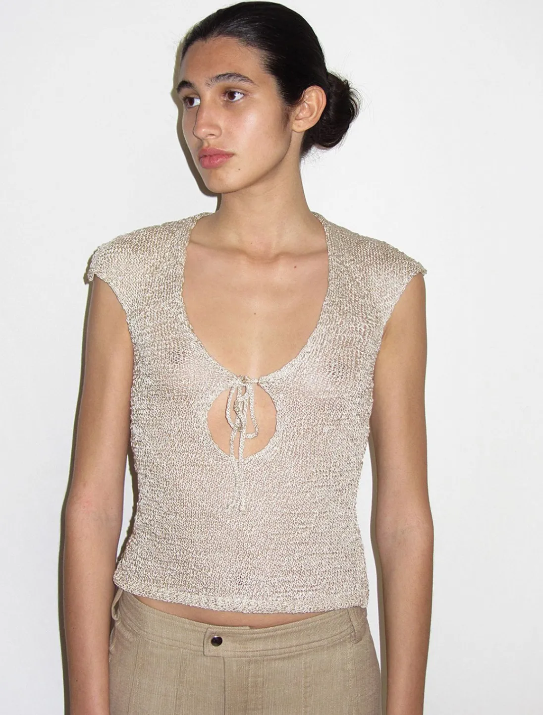 Top Med En Meget Udtalt Halsudskæring Og Slips Foran.