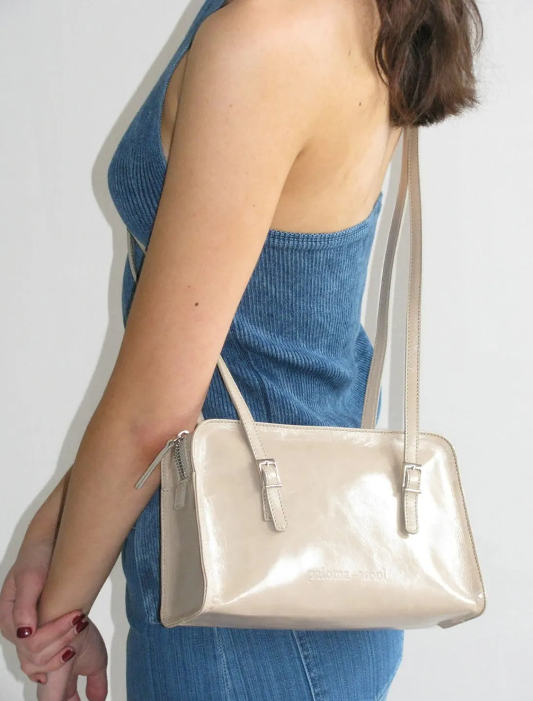 Skinny Lædertaske Med Indgraveret Logo. Indvendig Lomme.