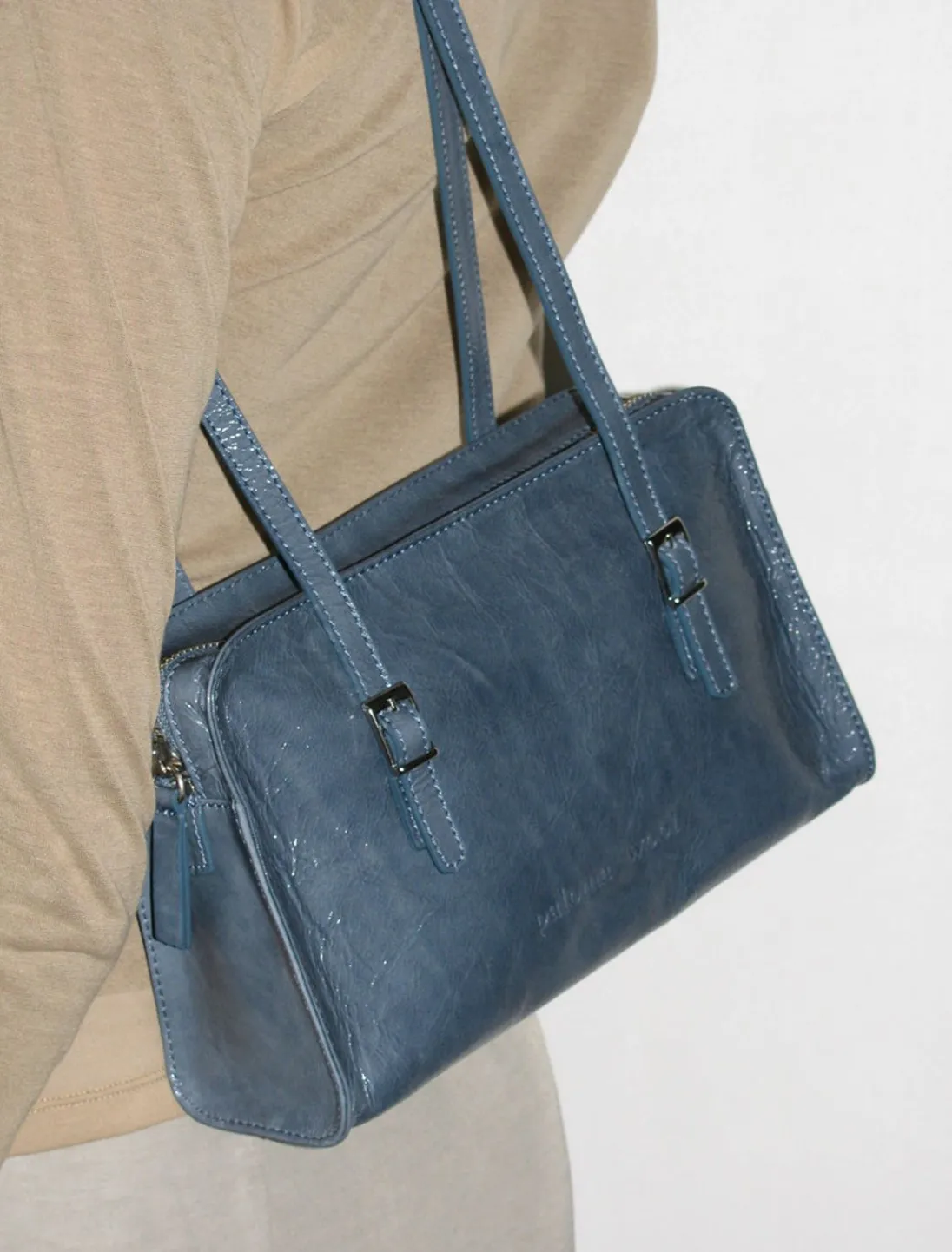 Blank Lædertaske Med Indgraveret Logo. Indvendig Lomme.