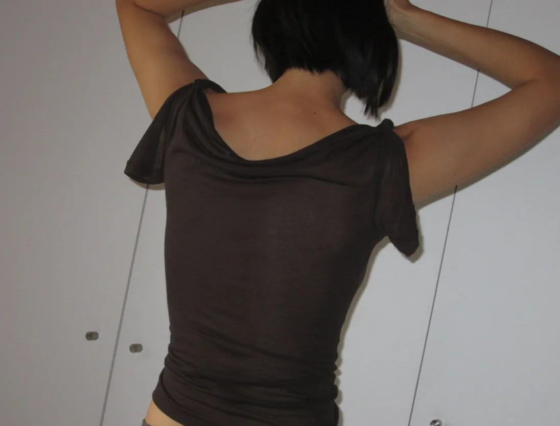Delikat, Let Gennemsigtig Top Med Snoede Og Åbne Ærmer.