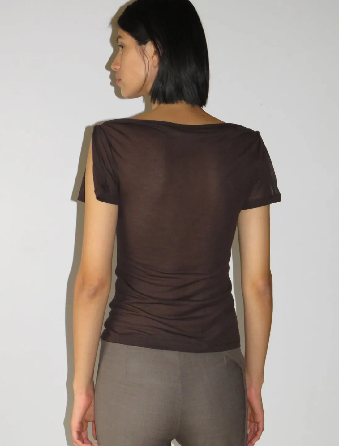 Stofet Har En Blød Håndfornemmelse, Der Minder Om Crepe, Lavet Af Bomuldsjersey.Farve Brun.