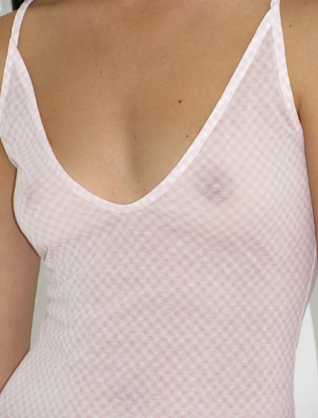 Sart, Gennemsigtig Mini-Strappy-Kjole Med Diamantprint. Den Har Et Pw-Broderi I Bunden.