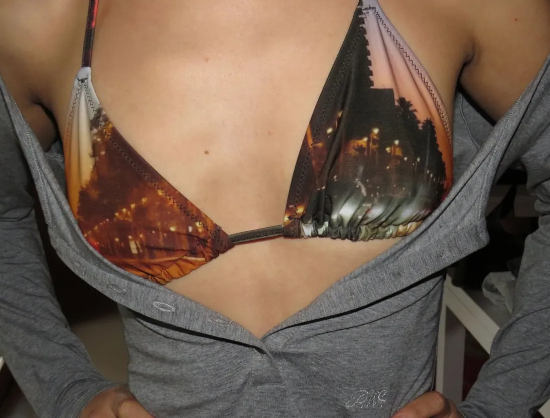 Justerbar Bikinitop Med Snoretræk Med Digitalt Tryk.